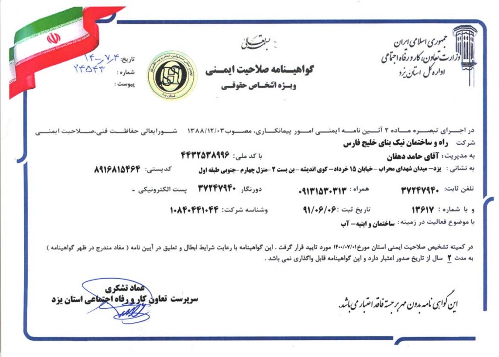 راه و ساختمان نیک بنای خلیج فارس